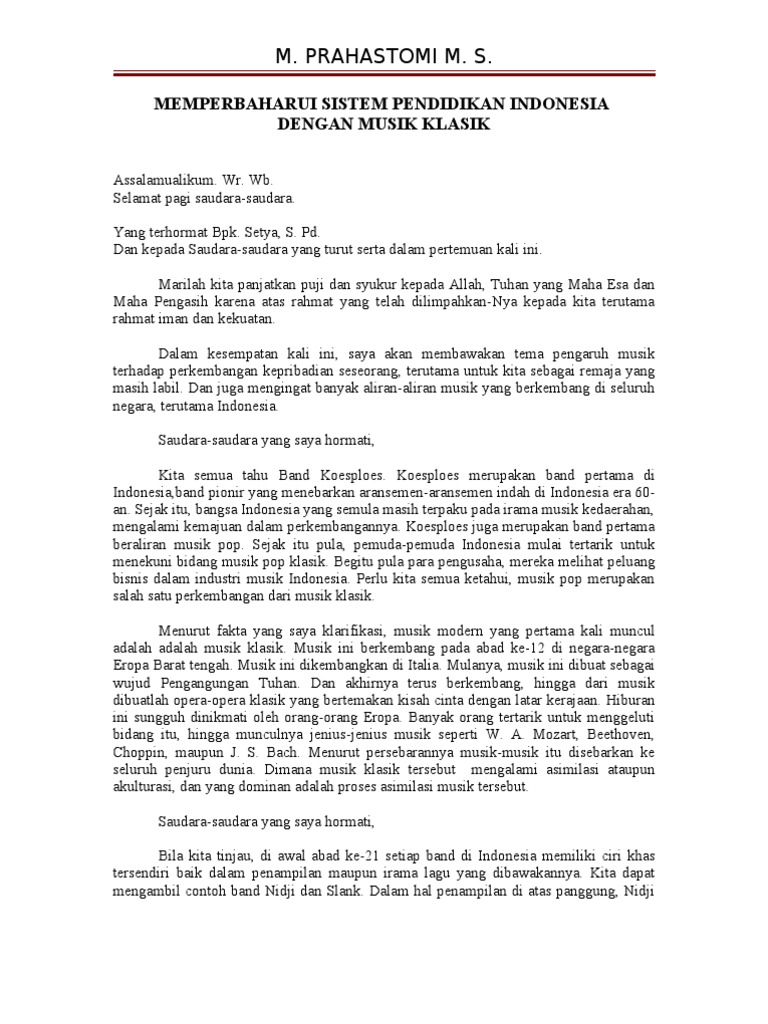 Contoh teks pidato bertema pendidikan. Memandang berbagai aspek kita memang harus bisa berpidato. Demikianlah pembahasan mengenai 25 contoh pidato persuasif perpisahan lingkungan kebersihan disiplin islami kesehatan dan pendidikan semoga dengan adanya ulasan tersebut dapat menambah wawasan dan pengetahuan anda semua terima kasih banyak atas kunjungannya. Melalui artikel contoh pidato tentang pendidikan ini semoga dapat memberikan motivasi bagi kita semua untuk terus menimba ilmu khususnya para siswa siswi untuk selalu serius dan tekun dalam menimba ilmu sampai ke. Pidato merupakan sebuah kegiatan yang mempunyai tujuan tertentu untuk memberikan sebuah ide atau gagasan kepada beberapa orang yang mendengarkanya. Pendidikan formal yaitu pendidikan yang bisa didapatkan dari lembaga yang sudah memperoleh pengakuan dari pemerintah seperti sekolah.