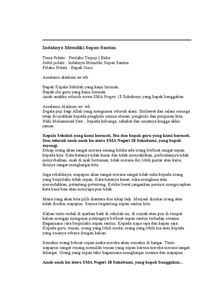 Contoh teks amanat pembina upacara kekinian contoh teks amanat pembina upacara berbagai baik kali ini admin akan membahas tentang berbagai macam teks amanat pembina upacara dengan pilihan mulai dari tema kebersihan sekolah ahklak baik menghormati orang tua kedisiplinan peringatan tujuh belas agustus semangat belajar dan yang lain lain. Baca juga artikel kumpulan pidato tentang disiplin yang juga dapat anda jadikan referensi dalam berpidato. Contoh pidato amanat pembina upacara sd terbaru 2016 dalam hubungannya dengan peserta didik komunikasi yang efektif dapat mendorong peserta didik berhasil dalam pembelajaran dan secara tidak langsung telah membantu anak anak membentuk pribadi yang mandiri dan penuh percaya diriberdasarkan gambaran itu maka tidak ada alasan kalau guru tidak bisa berkomunikasi kalau diminta menjadi pembina. Blogomjhon pada setiap pelaksanaan kegiatan upacara bendera yang dilaksanakan di setiap sekolah madrasah yang rutin diadakan pada hari senin pagi sebelum kbm kegiatan belajar mengajar berlangsung dipastikan ada amanat pidato yang disampaikan oleh pembina upacara oleh kepala sekolah madrasah ataupun guru yang ditunjuk.