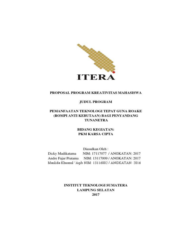 Contoh proposal ini sangat cocok pkm kewirausahaan dan penelitian. Cukup menggunakan beberapa benda bekas dan tak terpakai serta sedikit imajinasi sebuah alat yang lebih bermanfaat bisa kamu ciptakan. Sederhana ini dapat terwujud. Pkm penerapan teknologi diusulkanoleh.
