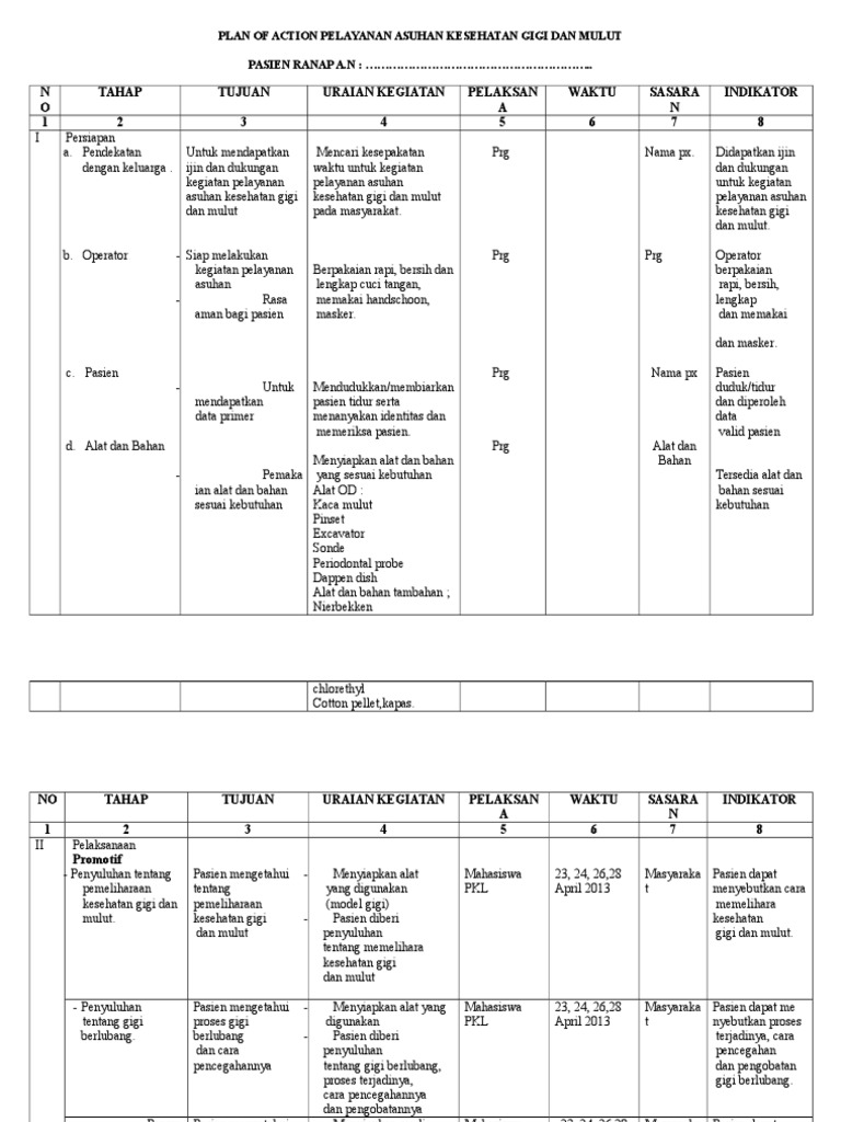 Contoh poa di puskesmas lengkap. Pelayanan nifas lengkap sesuai standar periode dari sd desembertarget. Biar tidak bingung ini contoh pengisian rencana usulan kegiatan puskesmas bisa langsung sedot saja biar ga bingung. Contoh pembuatan askeb komunitas keluarga di lihat dari riwayat kesehatan. Puskesmas adalah suatu kesatuan organisasi fungsional yang merupakan pusat pengembangan kesehatan masyarakat yang juga membina peran serta masyarakat di wilayah kerjanya 2. Pasien diare di wilayah kerja puskesmas pulo brayan. Poli gigi puskesmas baru tengah sebagai fasilitas kesehatan tingkat pertama fktp 1 yang ada diwilayah balikpapan barat tidak hanya menerima dan melayani pasien dengan sistem pembayaran tunai dengan harga yang terjangkau namun juga menerima dan melayani pasien yang memiliki jaminan kesehatan nasional jkn atau yang tergabung dalam bpjs seperti askes jamkesmas dan non pbi penerima.