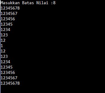 Oia nanti angka tertingginya atau angka terakhirnya ditentukan oleh yang ngejalani guys. Pada kesempatan kali ini saya akan menjelaskan tentang bagaimana cara membuat output angka berurutan berbentuk segitiga dengan bahasa c menggunakan borland c. Pada tutorial kali ini saya akan membagikan beberapa tutorial belajar membuat segitiga siku angka dengan for. Seperti yang kita tahu jika kita sebelumnya sudah mengenal atau mempelari tentang looping perulangan dan nested loops perulangan bersarang kita dapat membuat suatu pola yang dapat digambarkan atau ditampilkan dalam bentuk segitiga. Tetapi sebelum membuat pola menggunakan loop saya sarankan untuk membahas. Namun jika angka yang anda masukan bukan 1 2 dan 3 maka program akan menuju identifier ulangi.