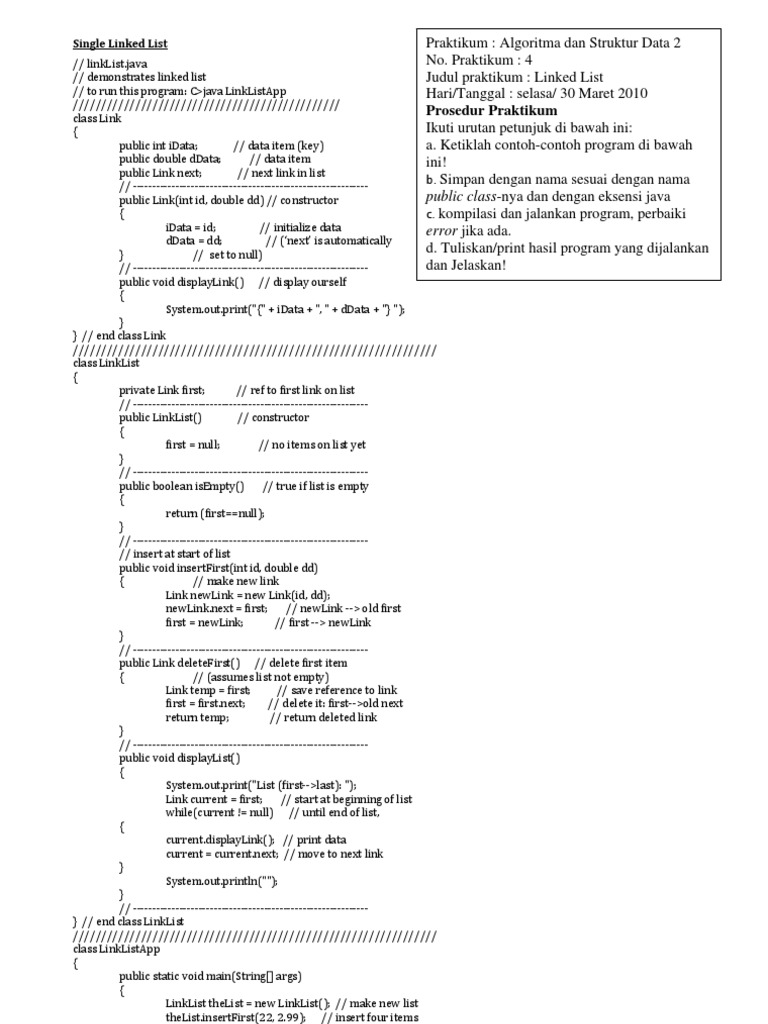Contoh program sederhana linked list pada bahasa pemrograman java java di dalam ilmu pengetahuan komputer sering kita mendengar tentang algoritma dan struktur data yang secara garis besar membahas terkait dengan struktur sebuah data. Contoh program menentukan bilangan positif dan.