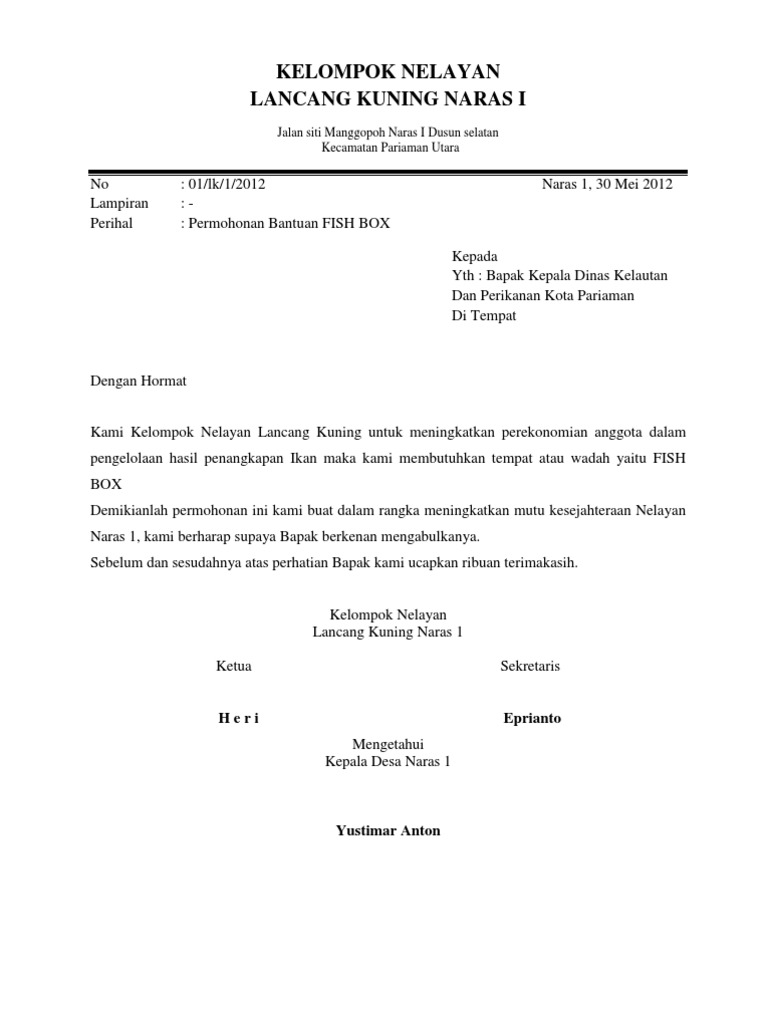 Contoh proposal pengajuan dana 1. Proposal ini menyajikan uraian singkat tentang latar belakang permasalahan yang dialami para nelayan khususnya nelayan di kp. Contoh proposal pengajuan dana ke perusahaan. Maka dengan itu kami dari kelompok nelayan lintas bahari mengajukan proposal bantuan satu unit kapal tangkap g una untuk menunjang kerja kami sebagai wujud partisipasi dalam mendukung program pemerintah baik daerah maupun pusat dalam hal ini mensejahterakan masyarakat nelayan. Proposal atau dalam bahasa inggrisnya disebut propose yang berarti pengajuan merupakan salah satu alat yang digunakan untuk memperkenalkan suatu konsep rencana atau blueprint dari suatu proyek kepada yang berwenang dalam tujuan untuk mendapatkan persetujuan atau kepentingan lainnya mulai dari dana atau bantuan. Contoh proposal bantuan alat tangkap ikan.