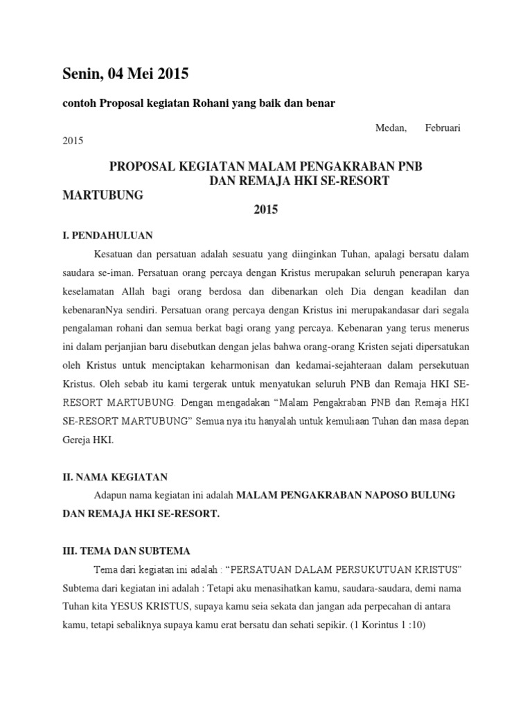 Lirik lagu rohani kristen. Dalam hari raya ini umat kristen mengenang reformasi yang dilakukan oleh martin luther. Pihak yang berkepentingan tersebut antara lain pemberi izin dan penyumbang dana seperti kepala sekolah orang tua sponsor polisi lurah atau kepala desa. Contoh proposal natal lengkap dengan rincian biaya by. Contoh proposal yang paling sering dibuat tidak hanya dalam kalangan organisasi tetapi dilingkungan sekolah juga sering membuat proposal untuk kegiatan dalam lingkup sekolah seperti proposal kegiatan pentas seni pensi. Contoh proposal kegiatan rohani yang baik dan benar.
