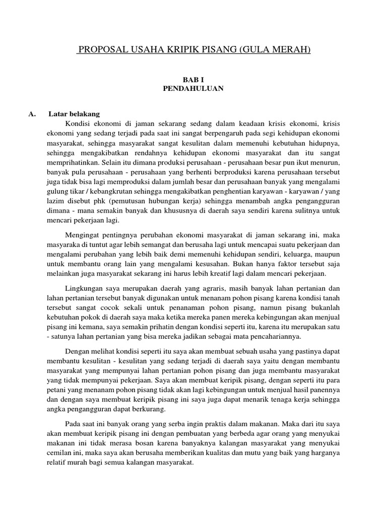 Contoh proposal usaha keripik pisang. Pendidikan tekhnologi kimia industri. Muhammad purwoto 1 3 03 0 16. Download contoh proposal usaha keripik pisang. Karena usaha ini terbilang mudah dan cepat di terima oleh masyarakat. Saya akan membuat keripik pisang. Karena usaha ini terbilang mudah dan cepat di terima oleh masyarakat.
