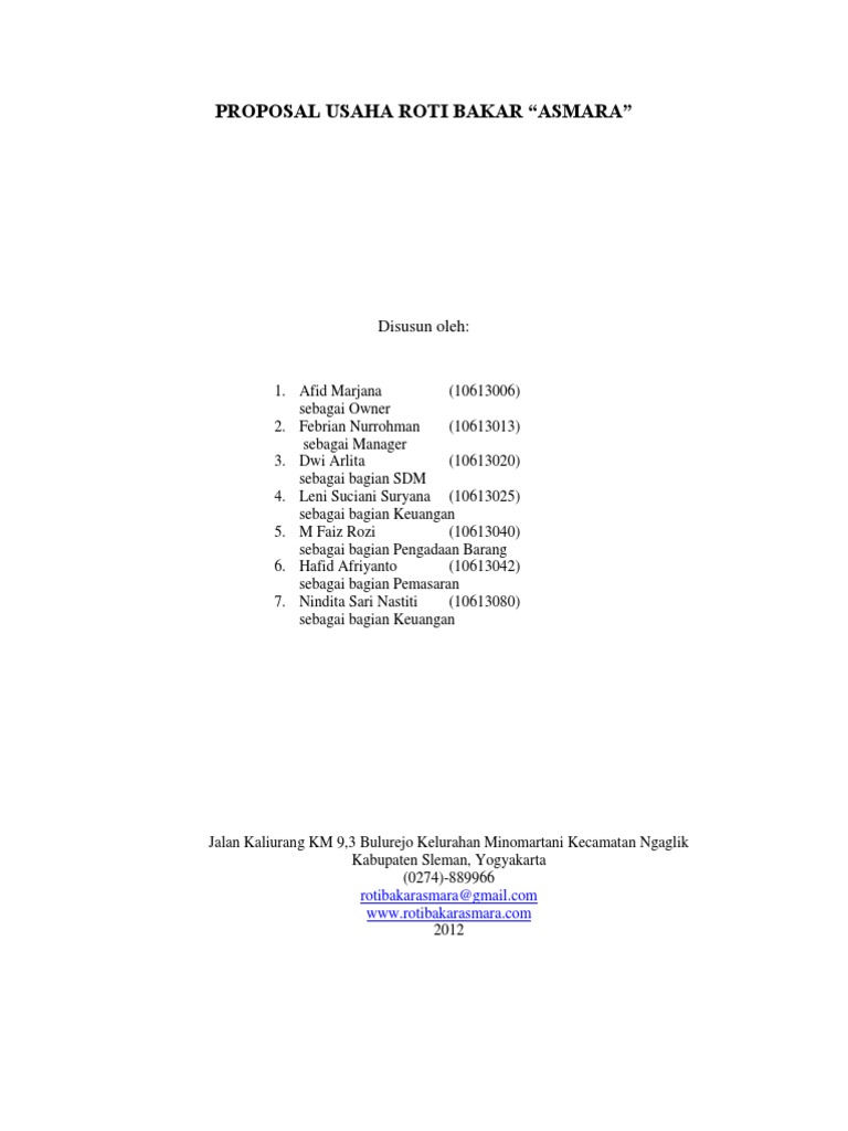 Usaha roti bakar cinta rbc merupakan usaha bersama yang kami rintis yang menggunakan modal awal dengan cara patungan maka dari itu keuntungan juga kami bagi rata. Cokelat kacang keju strawberry nanas melon. Walaupun penjual roti bakar sudah banyak dijumpai di berbagai tempat akan tetapi peluang usaha roti bakar ini masih memiliki prospek yang cerah. Estimasi harga roti bakar nanas strawberry rp 10000 nanas rp 10000 strawberry rp 10000 kacang rp. Contoh proposal usaha roti bakardaftar isi1 contoh proposal usaha roti bakar2 bab i pendahuluan21 latar belakang usaha roti bakar3 bab ii usaha yang diajukan31 analisis swot usaha roti bakar4 bab iii analisis keuangan contoh proposal usaha roti bakar bicara masalah bisnis indonesia bisa di bilang sangat kurang skali orang yang berprofesi sebagai pengusaha. Demikianlah proposal bisnis ini kami buat.