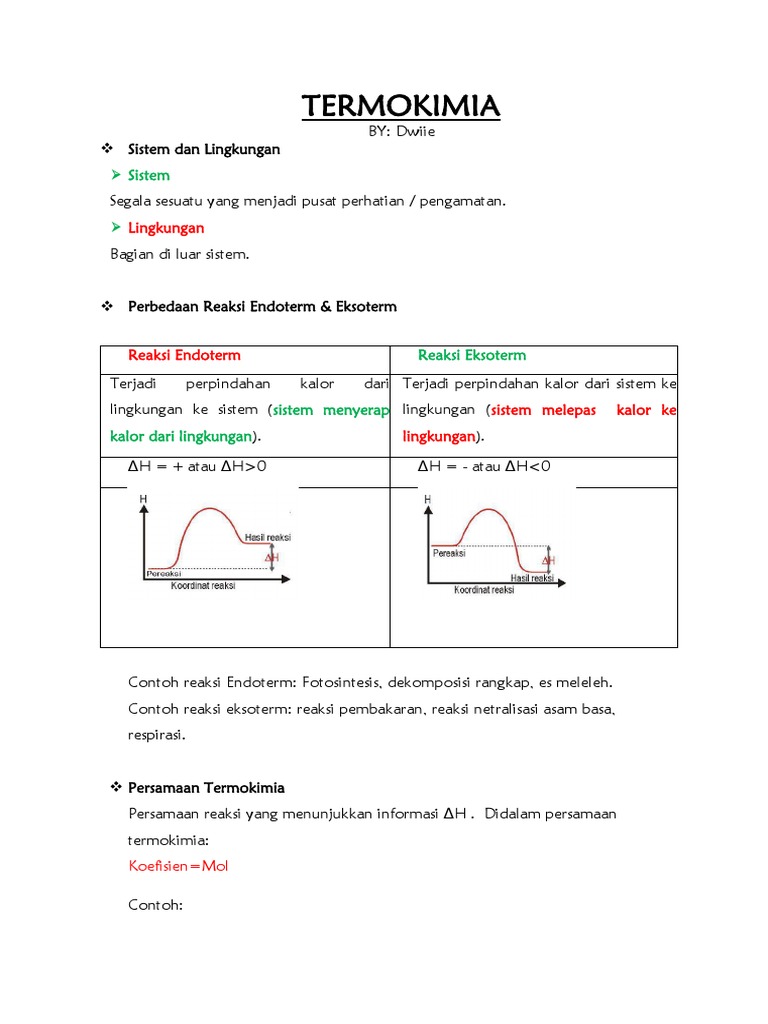 Reaksi eksoterm dan endoterm saat anda mengambil jurusan mipa atau ipa ketika sma anda akan memperoleh mata pelajaran kimia. Contoh reaksi endoterm adalah reaksi antara besi oksida fe 2 o 3 dengan karbon c pada proses reduksi bijih besi seperti ditunjukkan pada reaksi berikut. Istilah endo dan exo memiliki akar bahasa yunani yang berarti di dalam dan di luar. Pada reaksi ini terjadi perpindahan kalor dari lingkungan ke sistem sehingga suhu lingkungan turun dan menjadi lebih dingin. Contohnya termasuk cahaya dan suara. Reaksi eksoterm merupakan reaksi yang melepaskan kalor dari sistem ke lingkungan sementara itu reaksi endoterm merupakan reaksi yang menyerap kalor dari lingkungan ke sistem.