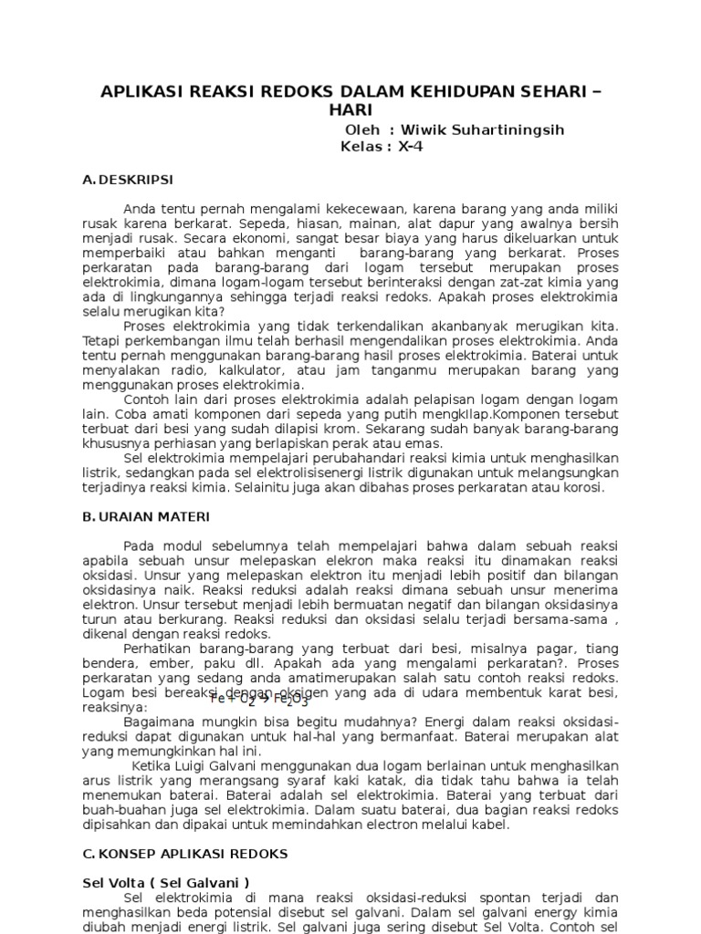 Contoh makalah kimia reaksi redoks makalah tentang reaksi redoks.