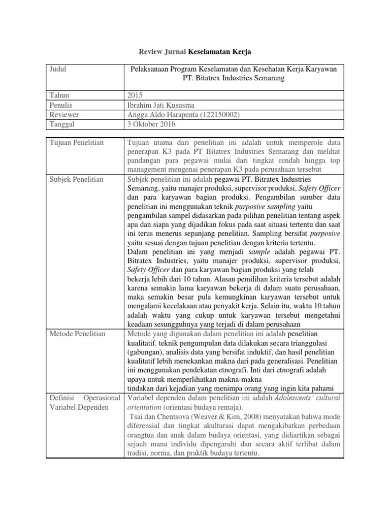 Contoh review jurnal doc. Ini contoh mereview jurnal yang dapat dijadikan referensi teman teman sekalian. Doc contoh review jurnal docx al asmaul husna academia edu doc review jurnal faruq umaruddin academia edu review jurnal ubupedia review jurnal internasional tqm cara mereview jurnal panduan review jurnal fix pdf daniel simanjuntak academia edu 343013441 review jurnal filsafat pendidikan 1 critical. Tujuan penelitian tujuan utama dari penelitian ini adalah untuk memperoleh pemahaman yang lebih baik bagaimana orientasi budaya tionghoa orang tua imigran dan anak anak mereka dapat berinteraksi untuk menghasilkan peningkatan gejala depresi di. Disertakan juga link download contoh jurnal pdf dan doc bila dibutuhkan. Bahkan kami yakin banyak dari anda yang mungkin pernah melihat contoh review jurnal nasional maupun contoh review jurnal internasional yang dilakukan oleh reviewer berpengalaman. Doc contoh review jurnal alfred kontjo academia edu cara mereview jurnalreview merupakan hal yang mudah untuk benda yang mempunyai fisik secara langsung dan lebih baik lagi untuk menuliskan hasilnya tanpa ada opini di dalamnya agar tidak menyesatkan orang yang membaca review kalian.