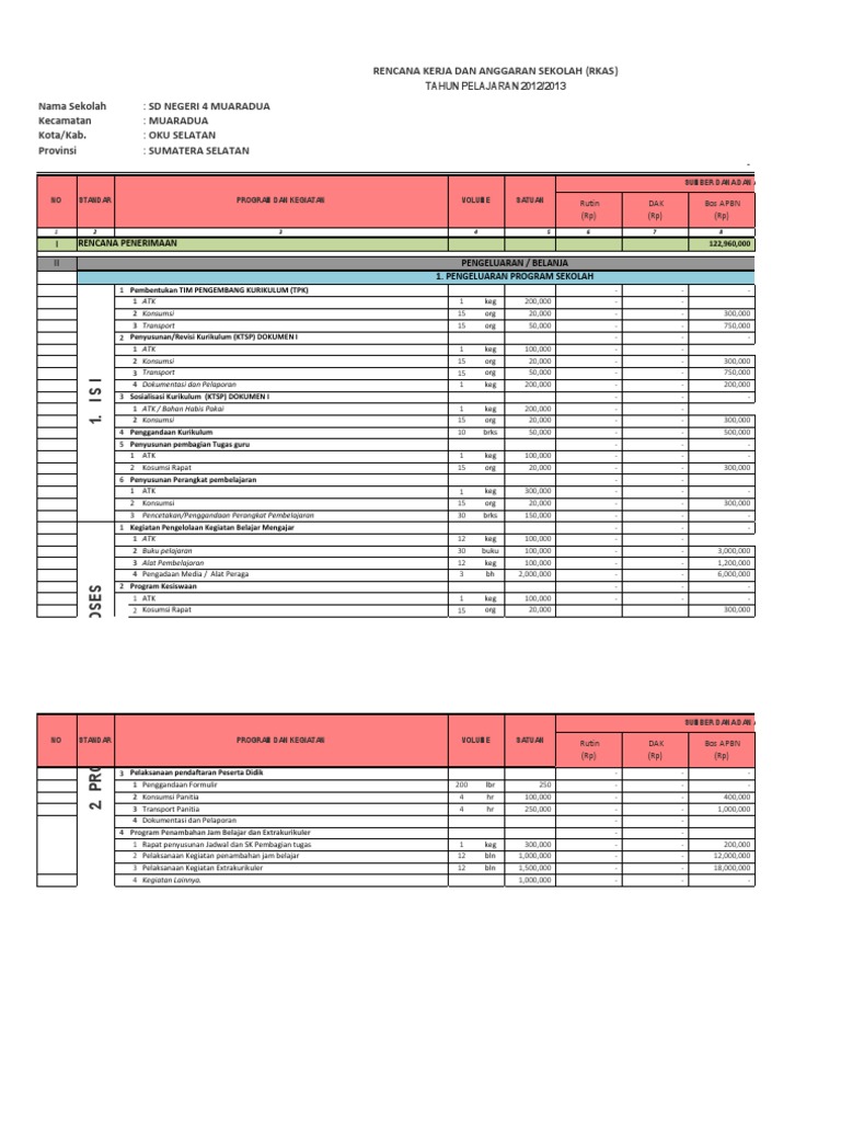 Update contoh rkas sd jumat 19 januari tahun 2018. Kebijakan pada dana operasional sekolah hampir tiap tahun mengalami perubahan demi perubahan yang tentunya berdampak pada pembuatan rkas rencana kerja dan anggaran sekolah. Contoh rkas sd smp sma 2018 format excel ini adalah format terbaru yang akan saya share pada kesempatan kali ini. Contoh rencana kerja tahunan smp format excel tahun 2018 ini merupakan file terbaru yang akan saya bagikan dalam postingan kali ini. Demikianlah berbagi file tentang download contoh rkas format microsoft excel semoga bisa membantu meringankan setiap pekerjaan bapak dan ibu sekalian. Rencana kerja dan anggaran sekolah rkas sendiri adalah dokumen.