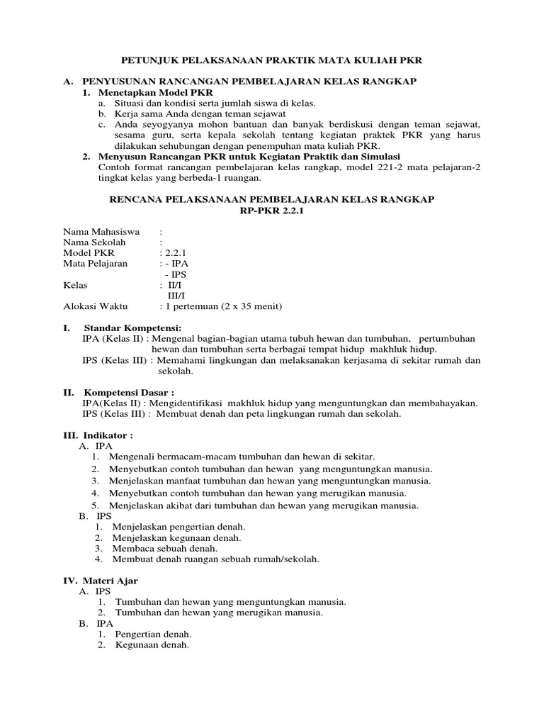 Contoh rpp kelas rangkap model 221.