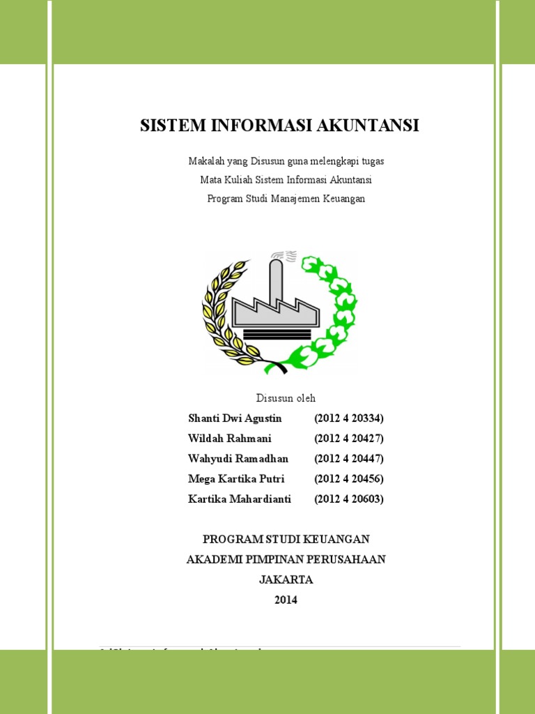 Contoh sistem informasi akuntansi. Unsur unsur ini dirancang untuk menyajikan informasi keuangan bagi kepentingan pengelolaan perusahaan dan pertanggungjawaban keuangan kepada pihak luar perusahaan. Perusahaan memiliki banyak hal hal yang perlu dikontrol mulai dari manajemen hingga pelaporan keuangan. 234 sistem akuntansi merupakan metode dan prosedur untuk mengumpulkan mengklarifikasi mengikhtisarkan dan melaporkan informasi kegiatan bisnis operasional dan keuangan sebuah perusahaan. Hasil dari berjalannya sistem ini nantinya akan digunakan untuk melaporkan informasi keuangan kepada investor penyedia layanan kredit dan semua pihak yang terlibat dalam sistem keuangan perusahaan tersebut. Tak lupa juga disini saya memberikan beberapa contoh sistem informasi akuntasi bagi sebuah perusahaan. Sistem informasi akuntansu sia dalam pembahasan kali ini saya akan menjelaskan mengenai definisi tujuan fungsi dan manfaat dari sistem informasi akuntansi atau disingkat sia.