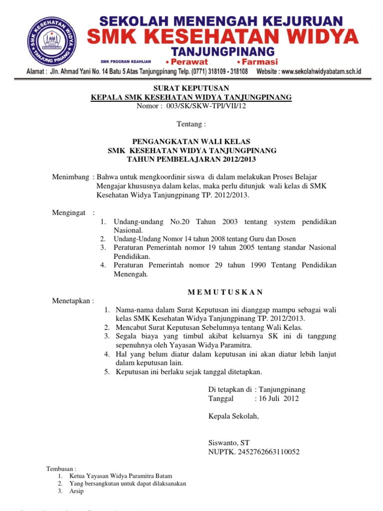Contoh sk pengangkatan kepala sekolah smk oleh yayasan doc. Contoh surat keputusan pengangkatan kepala sekolah merupakan surat keputusan yang dikeluarkan oleh ketua yayasan tentang pengangkatan kepala sekolah yang barujika anda ingin melihat bagaimana contohnya berikut ini kami sertakan di bawah ini. Contoh surat pengangkatan kepala sekolah oleh yayasan. Simpan simpan sk yayasan pengangkatan kepala ma untuk nanti. Tahun pelajaran 20172018 ketua yayasan dharma wanita kudi. 6 6 mendukung 2 2 menolak. Academiaedu is a platform for academics to share research papers.