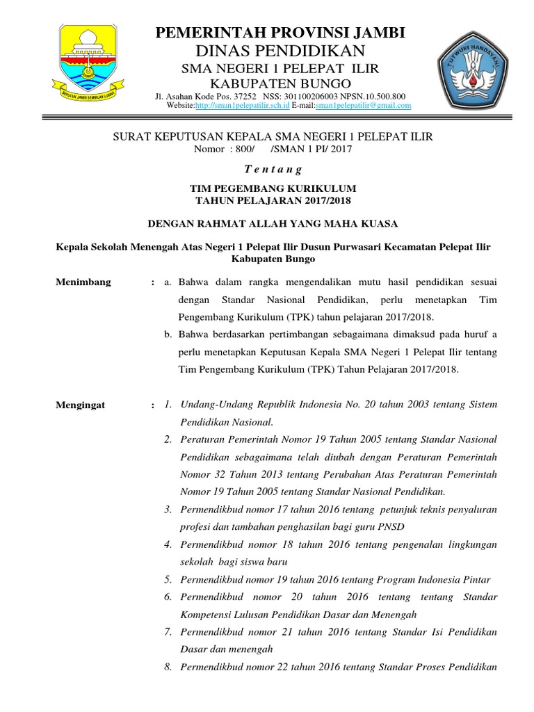 Sk tim pengembang kurikulum merupakan tim yang dibentuk oleh kepala sekolah terdiri yang dari beberapa guru bertugas untuk mengembangkan sekolahmadrasah terutama pada bagian kurikulum. Spmi sistem penjaminan mutu internal dapat berjalan dengan baik di satuan pendidikan jika di satuan pendidikan terdapat unsur penjaminan mutu di dalam manajemennya. Demikian contoh sk tim penyusun pengembang kurikulum sekolah sebagai pedoman dalam merancang kurikulum bagi sekolah dalam sekolah kurikulum dijadikan sebagai alat untuk mencapai suatu tujuan pendidikan mendorong otonomi sekolah dalam menyelenggarakan pendidikan serta mengembangkan kurikulum yang sesuai dengan kebutuhan.