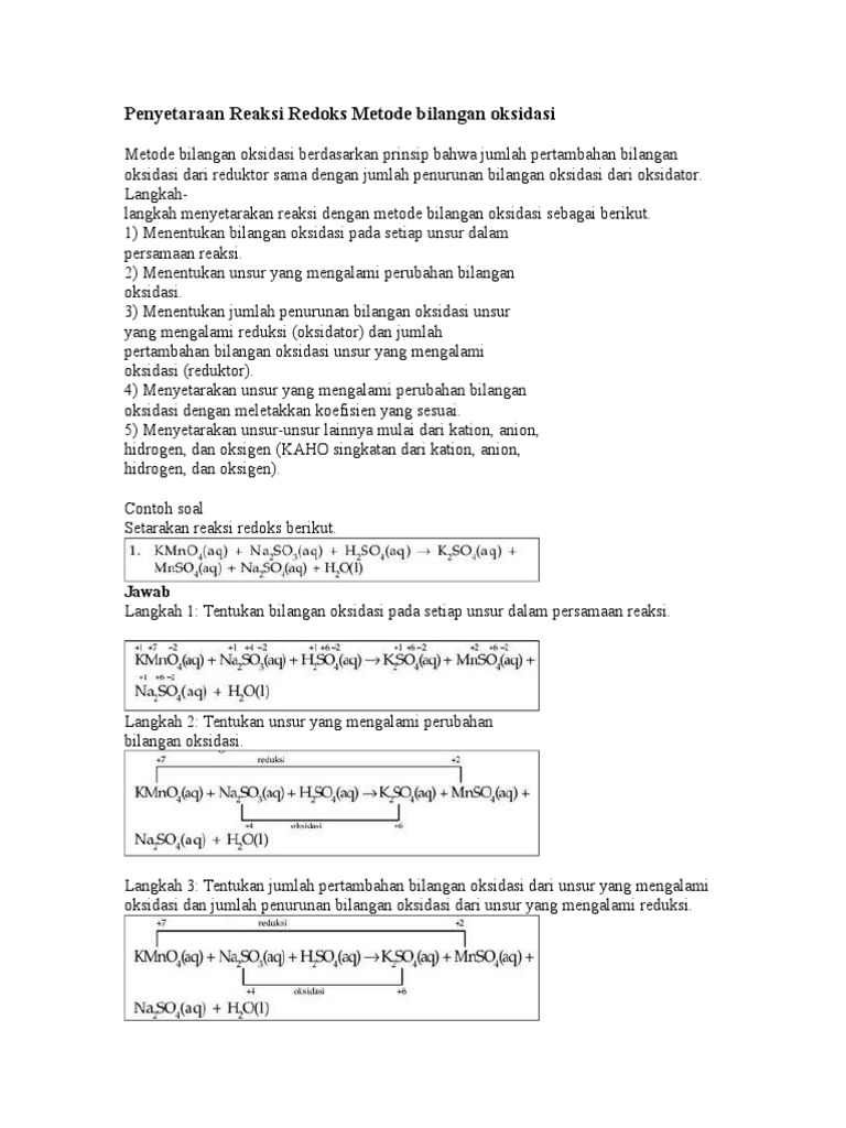 Bilangan oksidasi biloks didefinisikan sebagai jumlah muatan negatif dan positif dalam atom yang secara tidak langsung menandakan jumlah elektron yang telah diterima atau diserahkanatom yang menerima elektron akan bertanda negatif atom yang melepaskan elektron bertanda positif. Reaksi redoks reduksi dan oksidasi contoh soal aplikasi bilangan oksidasi kimia selain reaksi penggabungan reaksi penguraian dan reaksi metatesis masih terdapat satu jenis reaksi yang penting yaitu reaksi reduksi oksidasi redoksreaksi ini memiliki aplikasi yang sangat penting sebab merupakan reaksi kimia yang menghasilkan energi listrik siap pakai seperti pada baterai dan aki. Tentukan bilangan oksidasi atom unsur yang dicetak tebal pada senyawa dibawah ini. Sebelumnya telah dibahas mengenai cara menentukan bilangan oksidasi. Cl 2 g berubah menjadi cl aq c. Anda dapat memeriksa artikel terkait untuk membaca artikel sebelumnya.