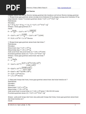 M1 2 x 1020 kg m2 4 x 1020 kg r 2. Setiap partikel di alam saling tarik menarik dengan partikel lain yang besarnya sebanding dengan perkalian massa kedua partikel dan berbanding terbalik terhadap kuadrat jarak kedua partikel. Fisika modern menjelaskan gravitasi menggunakan teori einstein relativitas umum tapi hukum gravitasi universal newton yang lebih mendekati sederhana cukup akurat dalam kebanyakan kasus. Berikut ini ada contoh soal essay tentang hukum gravitasi newton dan sudah dilengkapi dengan pembahasannya. Pada laman ini berisi soal dan pembahasan bentuk soal yang sering keluar ketika ulangan harian ujian sekolah dan ujian nasional un pada materi hukum gravitasi newton. Konstanta gravitasi umum 667 x 10 11 n m 2 kg 2.