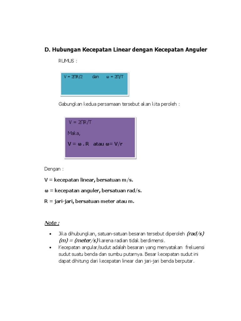 Untuk memantapkan pemahaman tentang hubungan antara laju linier dengan kecepatan sudut silahkan pelajari contoh soal di bawah ini. Persamaan kecepatan sudut adalah ω 2πt sedangkan persamaan kecepatan linear v 2πrt maka hubungan antara kecepatan sudut dengan kecepatan linear adalah sebagai berikut. Maka kecepatan linear dari benda tersebut dapat dihitung dengan cara berikut. Untuk lebih memahami tentang percepatan linear gerak melingkar silahkan kalian pelajari contoh soal berikut. Contoh soal kecepatan linear dan pembahasannya mengenaiketerkaitan nya dengan periode frekuensi dan kecepatan angular atau kecepatan sudut. Benda bermassa 1 kg bergerak dengan kecepatan 10 ms.