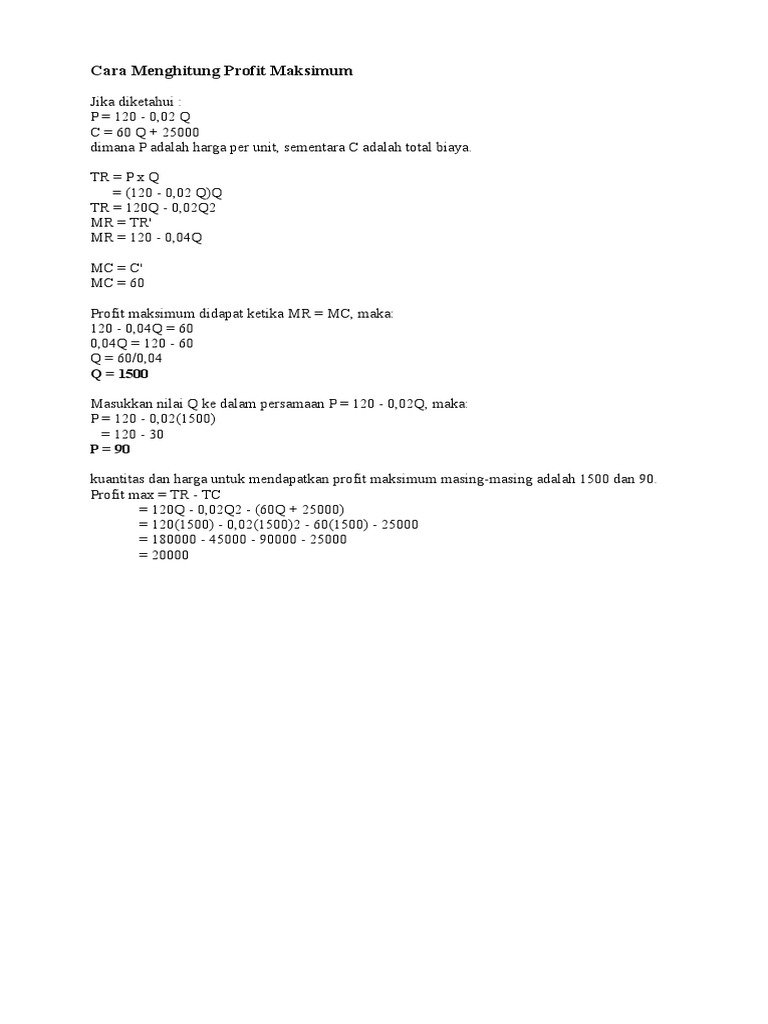 Mr 200q1200 dan mc 12q2 800q 6000 dan biaya tetapnya diketahui sebesar rp1200000 semua angka dalam ribuan. Tentukanlah laba maksimum yang diperoleh pedagang tersebut.