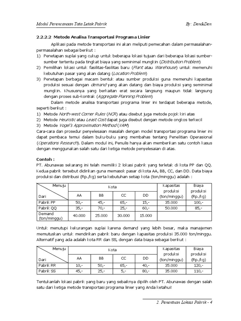 A metode sudut barat laut north west corner rule b metode biaya terendah least cost rule c metode aproksimasi vogel vogel approximation method vam penyelesaian. A metode sudut barat laut north west corner rule b. Tabel transportasi sebagai berikut. Metode transportasi metode transportasi adalah suatu metode yang digunakan untuk mengatur distribusi dari sumber sumber yang menyediakan produk produk yang sama di tempat tempat yang membutuhkan. Soal solusi awal diketahui. Posted on october 30 2016 by agatha standard.