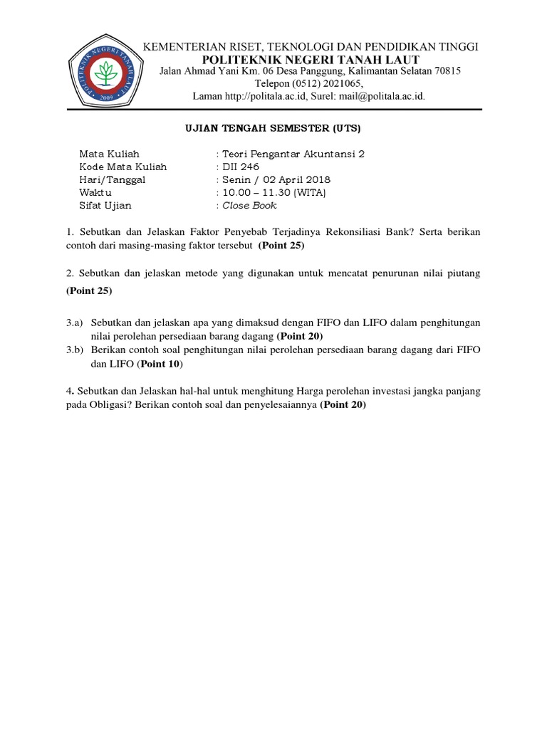 Pada tanggal 1 april 2015 pt manajemen keuangan network membeli obligasi dengan nominal rp 1000000 dan bunga 12. Soal ujian harus cukup komprehensif sehingga valid sebagai alat uji pemahaman. Penjualan 80 diantaranya penjualan kredit rp 47500000000. Latihantugas untuk topik obligasi. Berikut informasi sepenuhnya tentang contoh soal akuntansi keuangan 2 tentang obligasi. Contoh soal saham dan obligasi beserta jawabannya soal pilihan ganda saham dan obligasi.