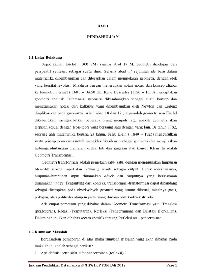 Tips mengerjakan tes ini yaitu anda harus memperbanyak perbendaharaan kosakata dan juga artinya. Transformasi geometri makalah dilatasi contoh kumpulan soal dosenpendidikancom transformasi merupakan suatu pemetaan titik pada suatu bidang kehimpunan titik pada bidang yang sama dan jenis jenis dari transformasi. Contoh soal dan pembahasan tentang pencerminan terhadap garis x a dan y b. Soal transformasi translasi refleksi rotasi dan dilatasi kelas xi dan pembahasan translasi adalah transformasi yang memindahkan titik titik dengan jarak dan arah tertentu. Reflesi adalah transformasi yang memindahkan titik titik dengan menggunakan sifat bayangan oleh suatu cermin. Berikut ini adalah kisi kisi soal pretest ppg 2018 yang merupakan kumpulan file dari berbagi sumber kisi kisippg tentang contoh soal pencerminan dan jawabannya sd yang bisa bapakibu gunakan dan diunduh secara gratis dengan menekan tombol download biru dibawah ini.
