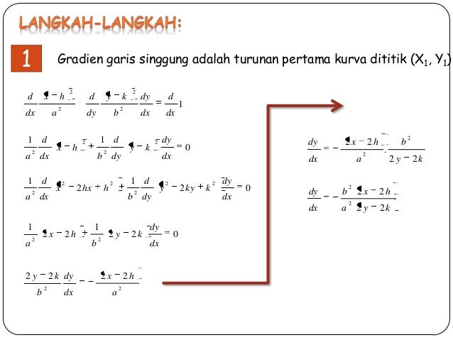 Persamaan garis singgung elips dengan persamaan x 2 4y 2 4 dan sejajar dengan garis y x 3 adalah. Syarat sebuah garis dikatakan menyinggung elips adalah apabila ada garis y mxc atau persamaan garis axbyc0 diubah dulu ke bentuk y mxc di substitusikan ke dalam persamaan elips variabel y pada elips di ganti dengan y mxc maka diperoleh sebuah persamaan kuadrat. Irisan kerucut cone rumus contoh soal dan jawaban. Fracx225 fracy216 1 b. 9x2 4y2 36 penyelesaian. Deret geometri atau deret ukur beserta contoh soal dan jawaban.