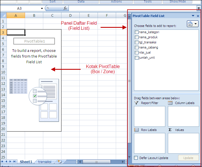 Untuk lebih jelasnya kita membutuhkan contoh kasus sebagai sample implementasi dari penggunaan pivot table. Berikut ini cara membuat pivot table dengan step by step. Dengan menggunankan pivot table kita dapat membuat satu laporan yang dinamis dari sumber data yang besar. Pivot table adalah fasilitas excel yang digunakan untuk merangkum menganalisa dan membuat suatu laporan data yang disajikan dalam bentuk tabel. Jika anda menggunakan versi yang lebih lama anda masih bisa membuat pivot table namun dimungkinkan ada beberapa bagian misalnya soal tampilan yang sedikit berbeda. Pivot table adalah salah satu aplikasi dalam worksheet excel yang dapat dipakai untuk klasifikasi data.