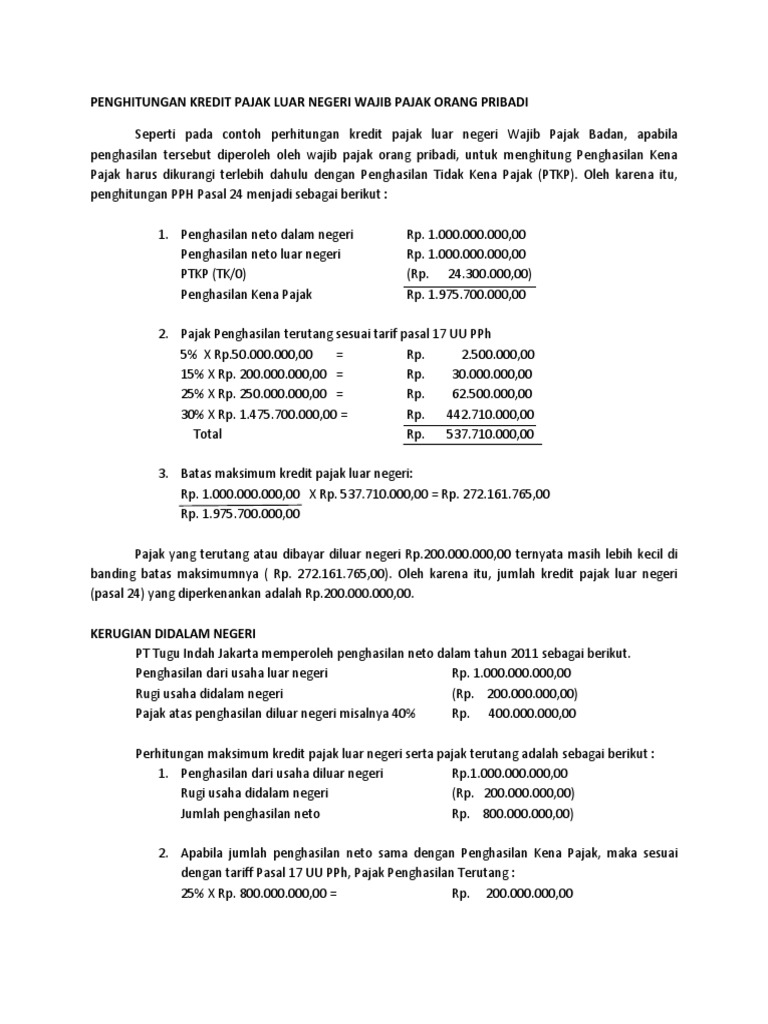 Contoh soal pph pasal 24. Selama tahun 2011 moscow inc. Dari perhitungan di atas dapat disimpulkan bahwa pph pasal 24 yang dapat dikreditkan adalah rp75000000. Demikian ulasan contoh soal perhitungan pph pasal 24. Pengertian pph pasal 24 pajak penghasilan pasal 24 pph pasal 24 pajak penghasilan pasal 24 adalah peraturan yang mengatur hak wajib pajak untuk memanfaatkan kredit pajak mereka di luar negeri untuk mengurangi nilai pajak terhutang yang dimiliki di indonesia. Pengertian pph pasal 24. Pada dasarnya wajib pajak dalam negeri terutang pajak atas seluruh penghasilan termasuk penghasilan yang diterima atau diperoleh dari luar negeri.