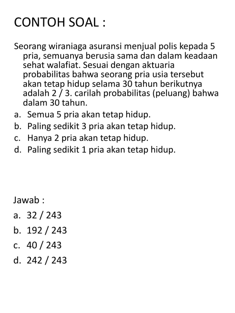 Contoh soal probabilitas statistik. Statistika ini adalah studi tentang bagaimana merencanakan mengumpulkan menganalisis menafsirkan dan. 50 soal tanya jawab teori probabilitas soal 22 23. Kunci aplikasi probabilitas dalam statistik adalah memperkirakan terjadinya peluangprobabilitas yang dihubungkan dengan terjadinya peristiwa tersebut dalam beberapa keadaan. Jika kita mengetahui keseluruhan probabilitas dari kemungkinan outcome yang terjadi seluruh probabilitas kejadian tersebut akan membentuk suatu distribusi probabilitas. Pertanyaan tersebut tidak selalu sesuai dengan aslinya kami memodifikasinya atau menggantinya dengan bentuk soal yang sama tetapi tidak mengurangi maksud dari soal tersebut. Bila seseoranng mengambil satu permen secara acak carilah peluang untuk mendapatkan.