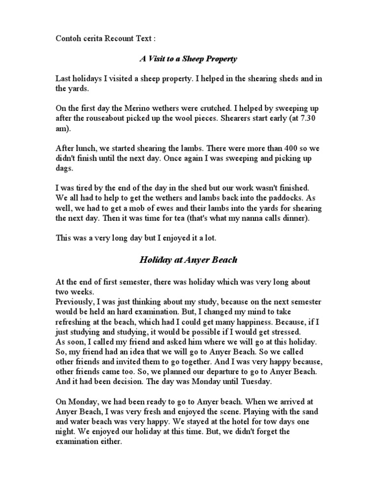 Kumpulan soal recount text beserta kunci jawaban terbaru buat sahabat sbi yang ingin mencari bahan soal recount text untuk latihan. Last holiday my students and i went to jogjakarta.