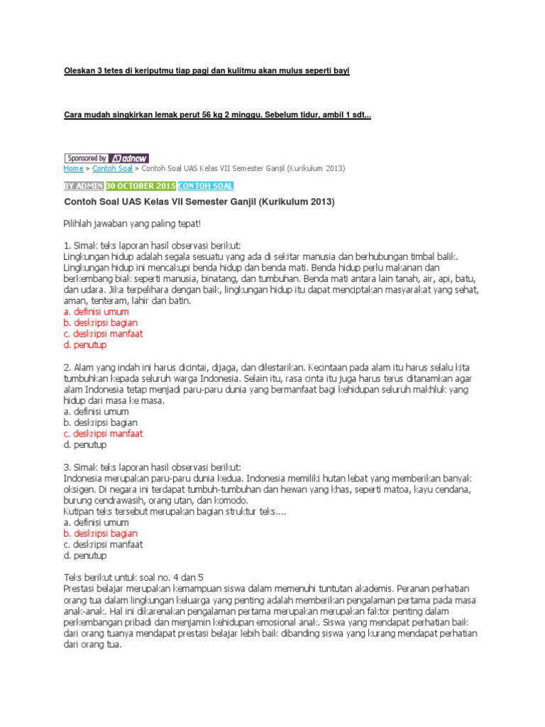 Kakak harap kalian semua sehat sehat selalu ya. Contoh soal bahasa indonesia kelas 7 semester 2 genap.