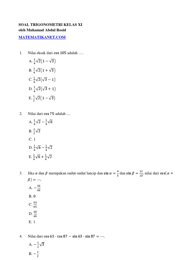 Contoh soal trigonometri kelas 11. Contoh soal dan pembahasan trigonometri lengkap kelas 11 di kesempatan kali ini kita akan memberikan contoh soal dan pembahasan trigonometri kelas 11. K adalah bilangan bulat. A sin 75 b cos 75 c tan 105 pembahasan a rumus jumlah dua sudut untuk sinus. Materi lengkap trigonometri dengan fungsi rumus dan pembahasan contoh soal dalam merancang kerangka sebuah jembatan perhitungan yang dilakukan tidaklah mudah. Makalah materi download unduh contoh soal limit matematika beserta pembahasan dan jawabannya lengkap terbaru beserta pembahasan tentang pengertian limit assalmu alaikum wr wb. Sehingga kita dapat melihat rumus penjumlahan sin pada uraian di atas.