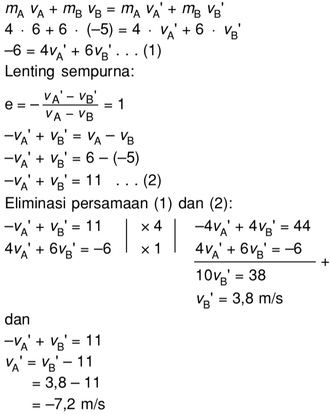 Contoh tumbukan lenting sempurna dalam kehidupan sehari hari yaitu. 3 ms kekanan dan 4 ms ke kanan. Masing masing benda a dan benda b bertumbukan lenting sempurna dengan massa 400gram. Bola a dan bola b masing masing bermassa 200 gram bertumbukan lenting sempurna. 3 ms ke kiri dan 4 ms ke kanan b. Contoh soal tumbukan lenting sempurna.