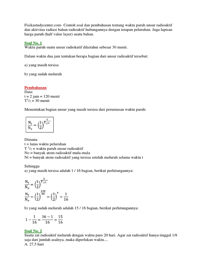 Deret keradioaktifan dan rumus waktu paruh contoh soal. Anda dapat menawarkan untuk scanning penyimpanan dan layanan arsip untuk dokumen dan foto. Pengertian bahan radioaktif 2.