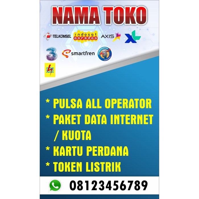 Banner spanduk tabel harga pulsa all operator harga bisa tulis sendiri ukuran 100cm x 60cm kolom operator yang tersedia xl tri pln token listrik spanduk jual pulsa dan listrik jual pulsa harga murah silahkan download gratis contoh desain spanduk jual pulsa jual pulsa hp online 24 jam token listrik prabayar voucher game spanduk jual pulsa listrik jual pulsa harga murah. Berikut dibawah ini adalah beberapa contoh tampilan banner spanduk jualan pulsa silahkan download secara gratis file psd dilink yang sudah disediakan. Download spanduk konter pulsa gratis logosiana. Cara buat spanduk jual pulsa untuk konter. Loket ppob enter pulsa cara cek dan bayar tagihan air pdam dan. Design spanduk pulsa murah dan banner disini hanyalah contoh saja yang bisa anda edit sendiri sesuai dengan outlet anda.