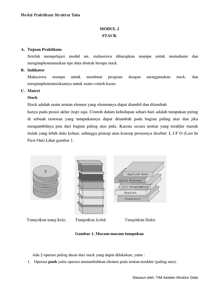 Contoh stack dalam struktur data. Beranda struktur data contoh program stack pada java contoh program stack pada java ibnu rasyidin 1548. Pop digunakan untuk mengeluarkan data teratas dari stack. Istilah stack dalam c adalah tumpukan tumpukan sendiri dalam bahasa kita adalah pengumpulan sebuah data lalu menaruh data tersebut ke dalam data data lain yang sudah di tata sebelumnya jadi metode peletakan beberapa data di atas data data lain itulah yang disebut stack. Biasanya kita akan menjumpai topik ini pada awal materi setelah array karena array dibutuhkan dalam. Pengertian stack pada struktur data adalah sebagai tumpukan dari benda sekumpulan data yang seolah olah diletakkan di atas data yang lain koleksi dari objek objek homogen atau suatu urutan elemen yang elemennya dapat diambil dan ditambah hanya pada posisi akhir top saja. Struktur data stack dan implementasinya 30 december 2016 2 struktur data tutorial c mahir koding sebelah mengenal cukup jauh tentang linked list kali ini kita akan membahas salah satu konsep dalam penggunaan linked list yaitu stack.