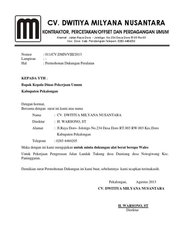 Jenis surat digunakan untuk pengarsipan nomer polisi truk apa yang sedang melakukan proses pengiriman. Ada berbagai macam jenis surat seperti surat kuasa surat ijin surat rekomendasi surat pengantar surat pemberitahuan surat jalan dan berbagai macam surat lainnya. Home contoh proposal surat peminjaman alat berat. Permohonan bantuan alat berat. Surat jalan itu sendiri dapat digunakan sebagai bukti transaksi. Sumbersari lowok waru malang jawa timur 55233 021 556033.