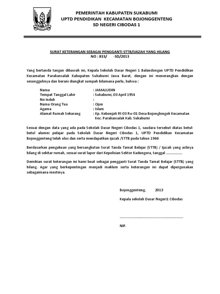 Format surat keterangan hilang ijasah anda merasa kehilangan ijasah dan anda yakin bahwa pernah sekolah di suatu lembaga pendidikan atau sekolah yang bersangkutan tentu ijasah tersebut tidak bisa diganti dengan format ijasah baru melainkan anda harus meminta surat keterangan hilang ijasah kepada sekolah yang pernah anda duduki. Contoh surat keterangan pengganti ijazahsttb untuk bapak atau ibu guru mungkin postingan kali ini sepertinya sepele hanya contoh surat keterangan pengganti ijazahsttb tetapi banyak sekali kasus di lapangan ini terjadi ada ijazah hilang ada yang rusak ada yang disimpan di lemari malah di makan rayap kutu kayu.
