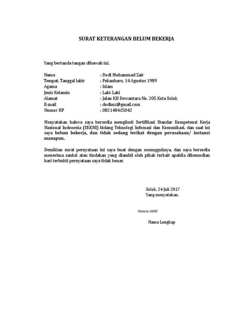 15 contoh surat pernyataan paling lengkap untuk berbagai kebutuhan belakangan ini penggunaan surat memang bisa dibilang sudah semakin minim terlebih untuk urusan pribadi. Contoh surat keterangan kerja surat keterangan kerja di gunakan oleh karyawan atau seseorang yang memiliki ikatan kerja untuk memberikan penjelasan atau informasi bahwasanya kita adalah sebagai pekerja dan sedang bekerja dengan ini kita akan mendapatkan sebuah konfirmasi baik terhadap orang yang bersangkutan dengan kita. Contoh surat keterangan kerja sebuah surat keterangan kerja sangatlah dibutuhkan untuk memberikan penjelasan kepada seseorang instansi maupun perusahaan tempat bekerja agar dapat menerangkan memberikan penjelasan tentang suatu hal yang terkait misalnya kecakapan prilaku maupun lama pengabdian.