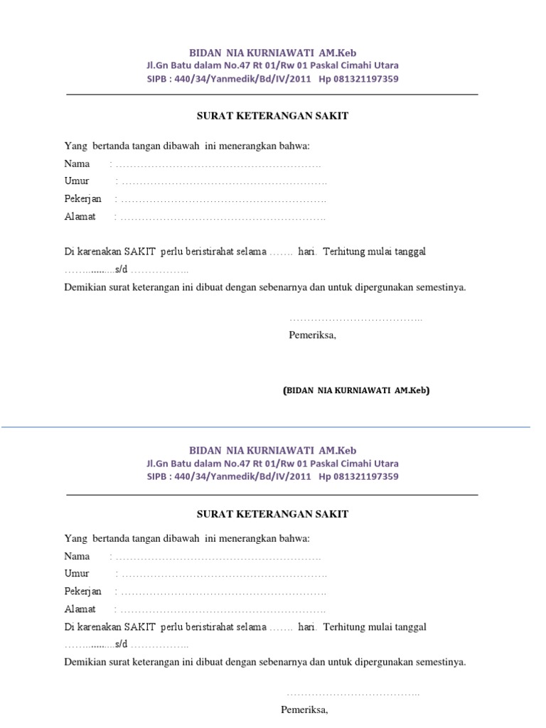 Contoh surat izin sakit. Demikian adalah beberapa contoh surat sakit untuk sekolah yang bisa anda jadikan sebagai referensi. Nah pada saat itulah anda bisa meminta surat keterangan. Contoh surat keterangan sakit tidak bisa dipungkiri jika kondisi yang sedang sakit mungkin akan menganggu aktivitas anda sehari hari seperti sekolah kuliah maupun bekerja. Dalam penulisan surat izin tersebut yang paling penting adalah keterangan izin jelas. Contoh surat keterangan sakit dari dokter sebuah surat keterangan sakit sangatlah penting bagi seorang karyawan yang bekerja di perusahaan swasta maupun pegawai negeri.