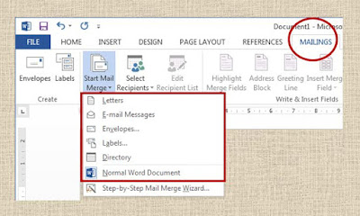 Mail merge atau surat masal adalah sebuah fasilitas dari word untuk mengirimkan kepada beberapa orang sekaligus dari satu sumber surat. Mail merge sangat membantu dalam pembuatan surat yang banyak dengan isi yang sedikit berbeda satu sama lain. Dari jendela mail merge di sisi kanan jendela word pilih jenis dokumen yang ingin anda buat. Anda bisa mendownload atau mencetak gambar atau foto contoh surat resmi menggunakan mail merge. Dengan menggunakan mail merge di microsoft word sangat memudahkan kita dalam membuat surat secara masal tanpa harus menulisnya ulang atau dengan mengcopy paste setiap halamannya dan lalu mengganti nama penerima. 15 cibinong bogor depok 24 oktober 2010 no.