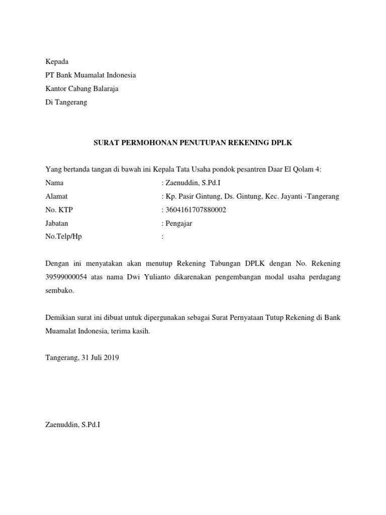 Lama waktu untuk penutupan perusahaan. Salah satu contoh berkas surat permohonan penutupan rekening bank suatu perusahaan biasanya menjadi syarat perusahaan dalam menutup rekening dapat ditunjukkan sebagai berikut. Karena adanya prosedur yang rumit dalam menutup a sebuah perusahaan di indonesia kami akan menunjukan kepada anda waktu yang dibutuhkan untuk menyelesaikan seluruh persyaratan dari penutupan perusahaan dalam articel 143 undang undang no. Kecanggihan teknologi sekarang ini menjadikan komunikasi serba digital yang tentunya sangat memudahkan orang dalam berkomunikasi. Kepada yth kepala kantor pelayanan perizinan terpadu.