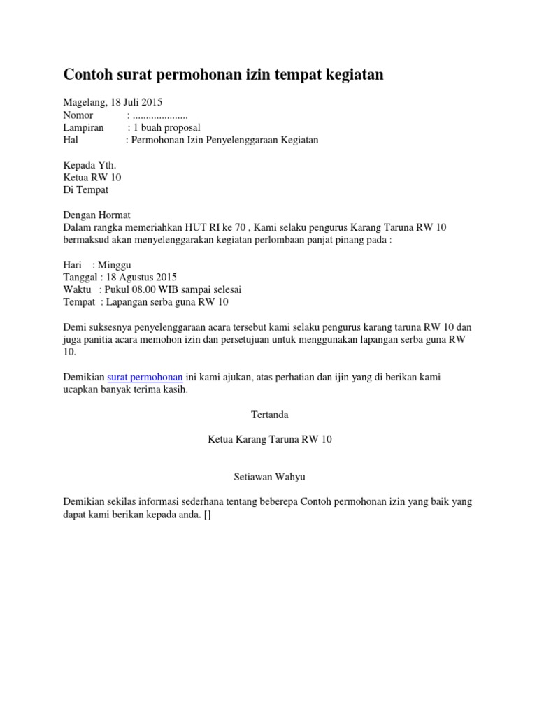 Contoh surat izin peminjaman tempat nomor. Permohonan izin tempat kepada yth.
