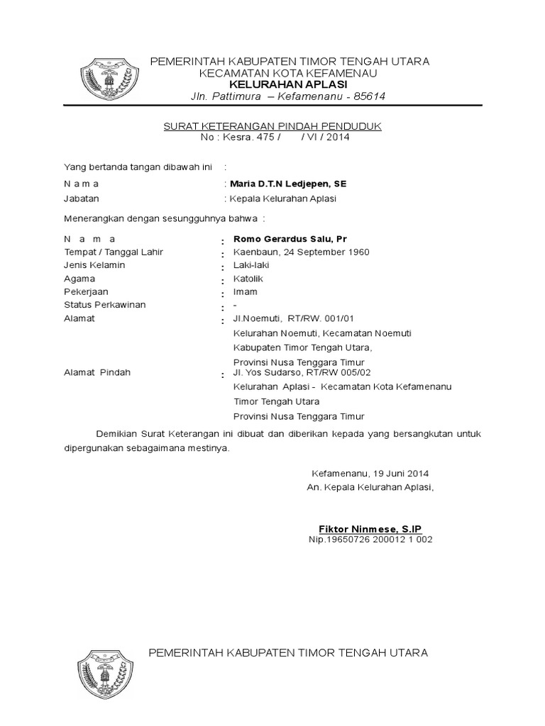 Persyaratan contoh dan cara mengurus surat pindah tempat. Penerbitan surat keterangan pencatatan sipil. Penerbitan kartu keluarga. Surat keterangan pindah sebagaimana dimaksud ayat 4 berlaku sebagai pengganti ktp selama ktp baru belum. Selasa 27 mei 2014 pemerintah kabupaten riang. Misalnya saja bagi anda yang telah melangsungkan pernikahan dengan seseorang yang berdomisili di wilayah berbeda.
