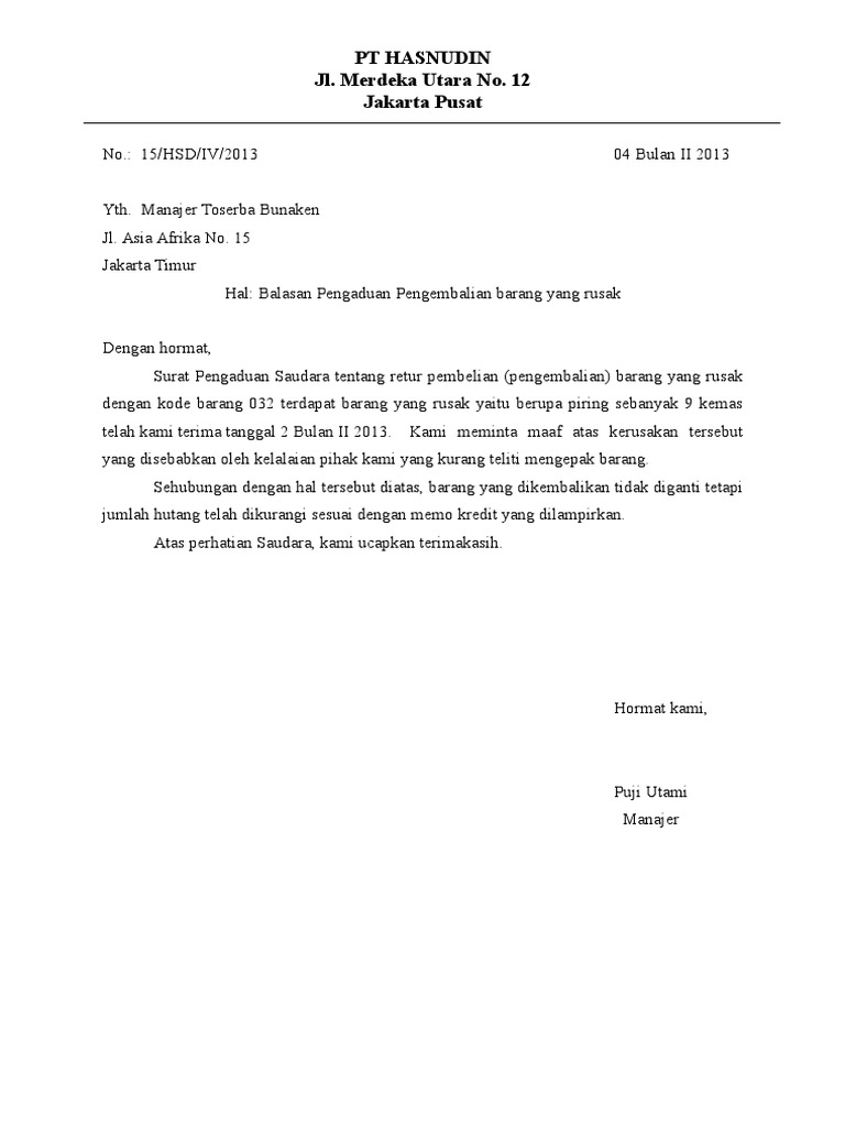 Dari pihak managementdistributor hanya menerima retur minimal 3 bulan sebelum masa expired date. Proyek bio farma pt. By pujakesuma a las november 01. 41 retur pembelian barang adalah pengembalian barang yang cacat atau tidak sesuai dengan spesifikasi yang telah ditetapkan oleh pt. Walaupun sekarang ini sudah banyak media komunikasi yang canggih namun perusahaan sendiri masih harus tetap menggunakan surat. Meskipun begitu surat formal tidak harus selalu dibuat oleh keluarga bisa jg dibuat oleh individu.