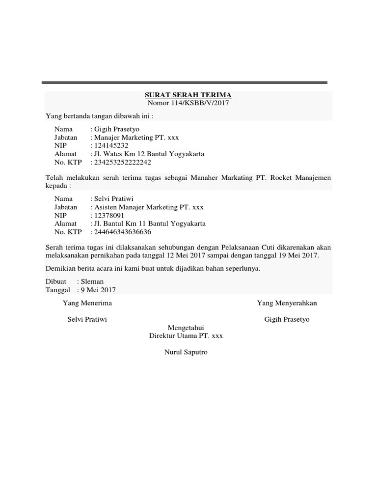 Surat ini dapat digunakan luas oleh beberapa kalangan seperti halnya digunakan sebagai surat serah terima dokumen surat serah terima barang dan juga surat serah pekerjaan. 4 bahwa dengan telah dilakukannya serah terima dokumen tersebut sebagaimana dimaksud butir 3 diatas maka kewajiban pihak pertama untuk menyerahkan dokumen kepada pihak kedua dan hak pihak kedua untuk menerima dokumen tersebut dari pihak pertama telah dilaksanakan. Berita acara serah terima barang merupakan salah satu dokumen penyerahan barang yang cukup penting. Hukum menjual barang yang disewakan selama masa sewa download surat surat. Yang bertanda tangan di bawah ini. Untuk selanjutnya disebut sebagai pihak pertama 2.