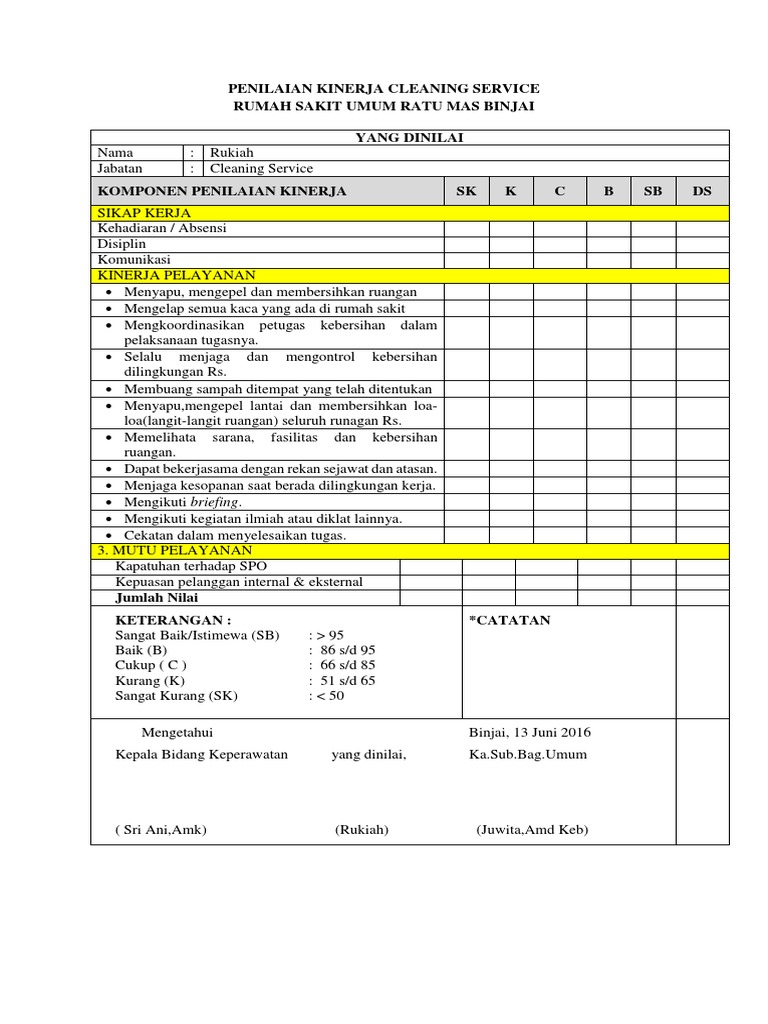Contoh performance appraisal penilaian kinerja karyawan 1. Dan mempromosikan pengembangan karyawan. Contoh penilaian kinerja karyawan yang satu ini biasanya dilakukan oleh perusahaan yang bergerak di bidang jasa. Unsur unsur dari penilaian kinerja karyawan yang dianggap berhasil adalah sbb. Anda bisa mendownload file powerpoint presentasi ini pada web. Evaluasi berdasarkan pendapat si penilai sendiri.