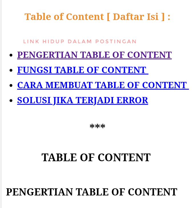 Digunakan untuk pengelolaan daftar isi. Namun secara khusus kita akan mempelajari cara mudah membuat daftar isi dengan microsoft office word 2010 yang menu menunya identik dengan bersi office sebelum dan sesudahnya.