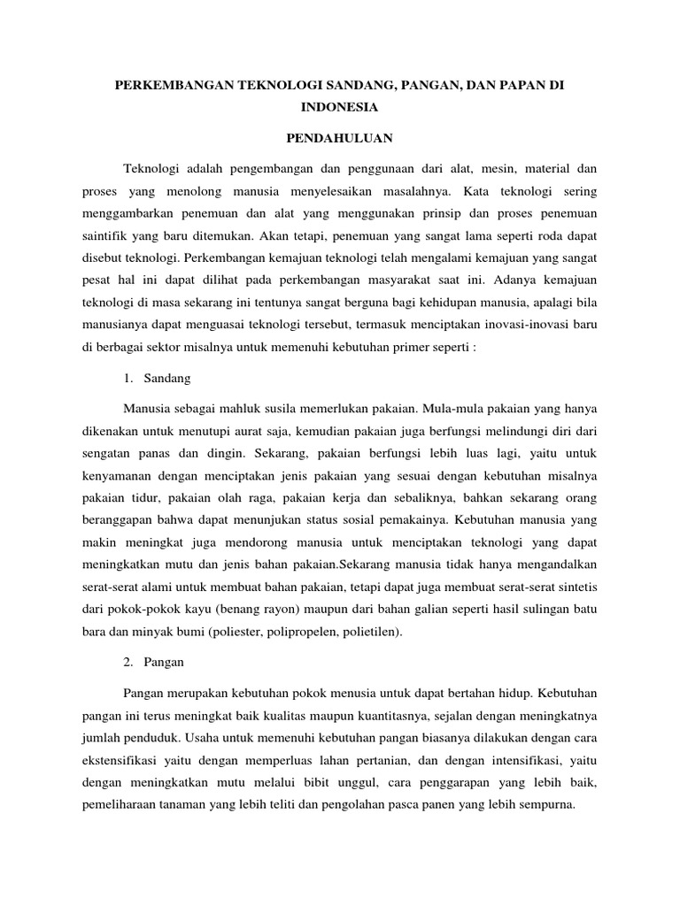 Sedangkan sekarang orang memotong kayu dapat menggunakan gergaji mesin. Teknologi produksi barang barang pada masa kini dimanfaatkan oleh industri industri dengan pengelolaan yang terencana dan teratur. Teknologi produksi modern dimanfaatkan oleh tekstil kertas semen kendaraan bermotor pesawat terbang elektronika perkapalan serta industri besi dan baja. Dalam proses produksi satu bahan dapat diolah menjadi beberapa barang produksi. Teknologi transportasi masa kini transportasi masa kini telah menunjukkan kemajuan yang pesat baik transportasi darat air dan udara. 22 alat alat komunikasi tradisional dan 18 modern.