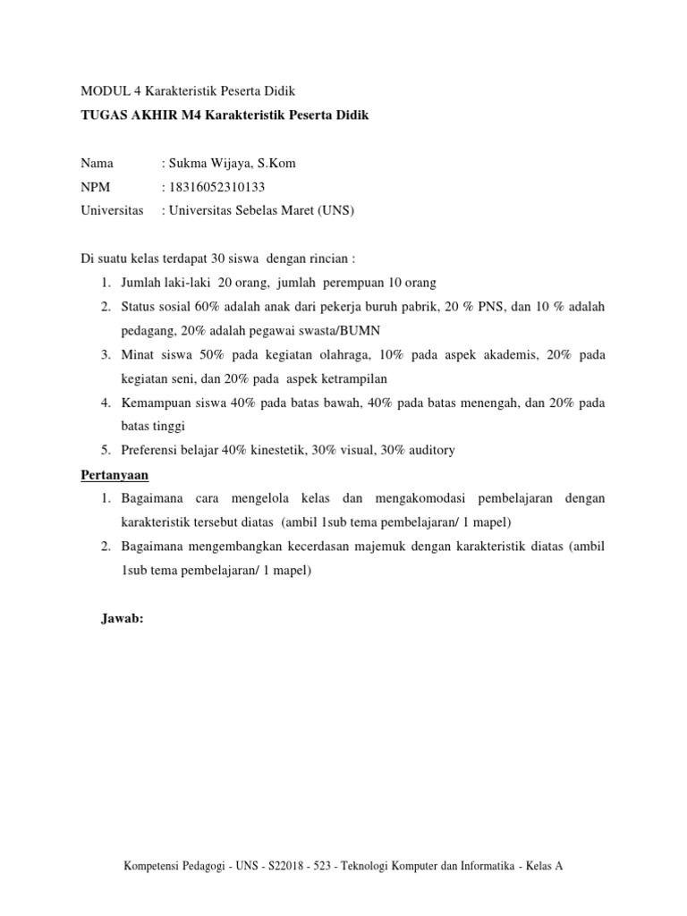 Tugas Akhir M4 Karakteristik Peserta Didik